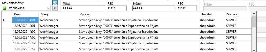 Home » Tutoriály » Nové funkce » Logování změn stavu objednávky (5.0.3)