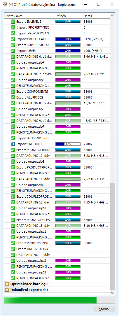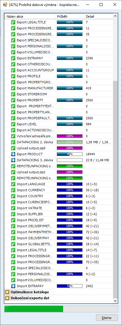 2. S probíhajícím importem zboží na serveru se dokončil export a přenos dat na server