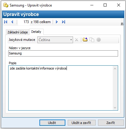 Zadání provedete v inShop Manageru v agendě Katalog zboží - Výrobci - rozkliknete výrobce - nová záložka Detaily.